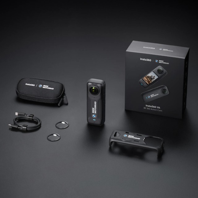 Omejena izdaja BMW Insta360 X4 360° akcijska kamera z 1/2'' senzorjem. ločljivost videoposnetkov 360° je 8K / 30 sličic na sekundo, do 100 sličic na sekundo pri 4K. Ločljivost fotografij do 72 milijonov slikovnih pik. Visokokakovostna robustna konstrukcija, velik 2,5-palčni zaslon na dotik, vodotesnost do 10 m. Učinkovita stabilizacija FlowState s 6-osnim žiroskopom. Nova baterija z veliko zmogljivostjo 2290 mAh. Upravljanje z gestami, glasovno upravljanje 2.0. Način snemanja videa Video, Active HDR, Timelapse, TimeShift, Bullet Time, Loop Recording, Pre-recording. Velikost fotoaparata: 46 x 123,6 x 37,6 mm