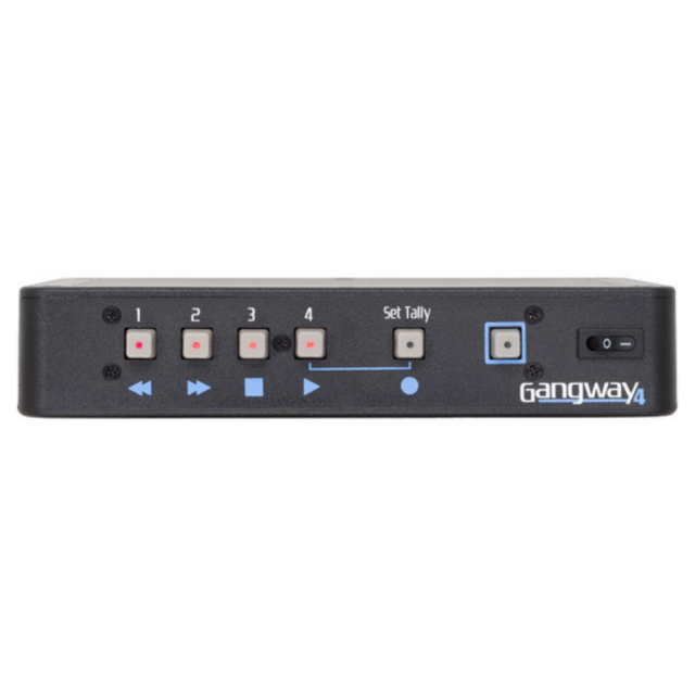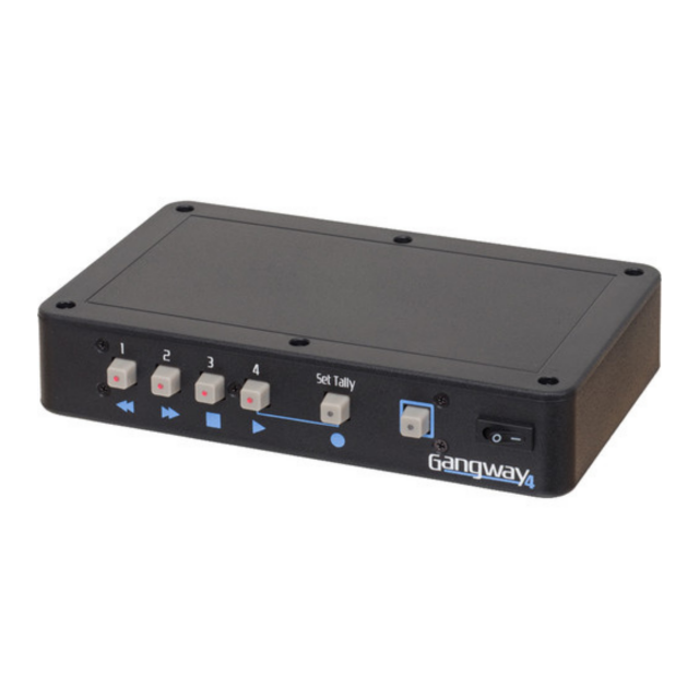 GangWay4™ je kompaktno 4-portno stikalo RS-422 Gang Roll in Trigger Box GPI za nadzor do štirih videorekorderjev.