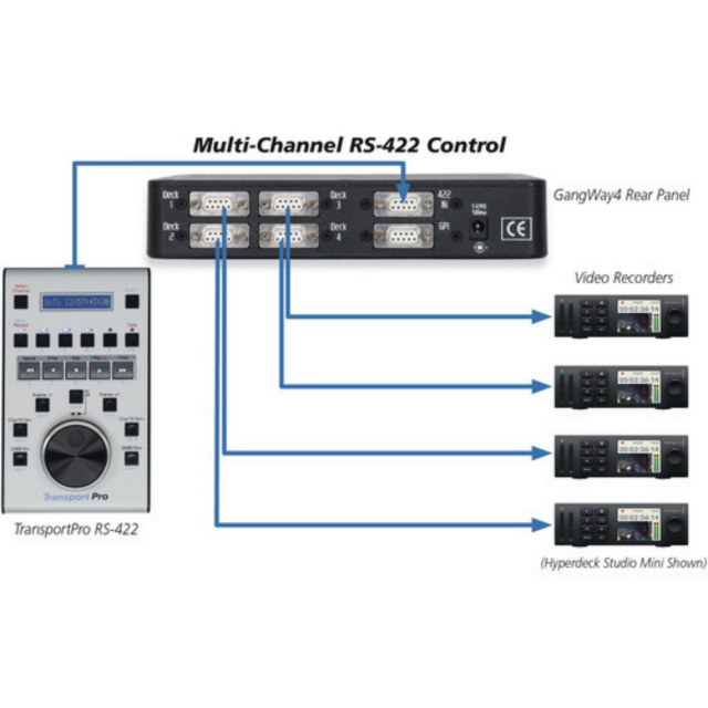 Povežite katerikoli krmilnik RS-422, kot so VTC1, MCS6 ali TransportPro, z edinstveno možnostjo izbire oddaljenega kanala GangWay.