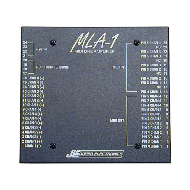 MLA-1 podjetja JL Cooper je stenski linijski ojačevalnik MIDI s štirimi vhodi MIDI in štirimi izhodi MIDI, ki so običajno dostopni prek ločene plošče s priključki MIDI. To omogoča prenos signalov MIDI na razdalje 300 metrov ali več po običajnem zvitem paru.