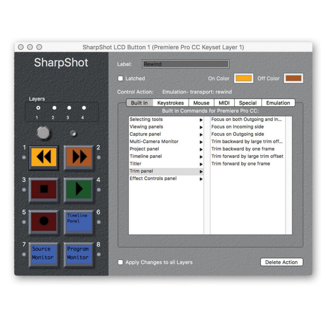 Paleta ukazov SharpShot, ki vključuje grafični zaslon LCD z osvetlitvijo RGB, lahko prikaže do 64 barv in je opremljena s programskim nadzorom vmesnika, zaslona in osvetlitve. Krmilnik, ki omogoča takojšnje predvajanje in nadzor zvoka ali videa, je primeren za avtomatizacijo oddajanja, postprodukcijo in druge specializirane aplikacije. Nadzorna enota vas s prikazom 8 različnih barv opozori tudi na spremembo pogojev delovanja. S prilagojenim uporabniškim vmesnikom krmilnik SharpShot ponuja prilagodljiv nadzor in hitro delovanje ter hkrati zmanjšuje število človeških napak.