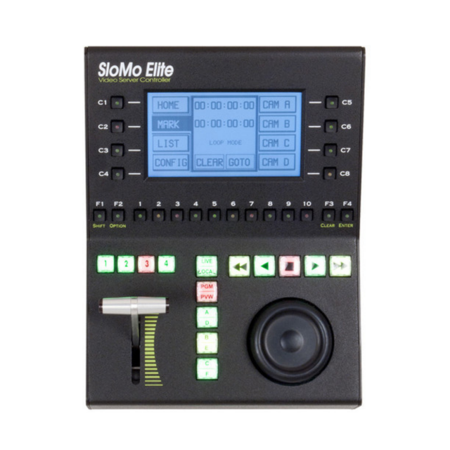Krmilnik SloMo Elite-C podjetja JLCooper je krmilnik video strežnika z vmesnikoma Ethernet in USB 2.0. Ta kompaktna različica je za 33 % manjša od krmilnika SloMo Elite in je namenjena razvijalcem programske opreme in proizvajalcem OEM. Krmilnik SloMo Elite-C je zasnovan za aplikacije počasnega gibanja, kot so šport, oddajanje, table z rezultati in takojšnje predvajanje. Opremljen je z 10-bitnim Hallovim učinkom T-Bar, elektromagnetnim kolescem in 4,5 x 2,5-palčnim osvetljenim grafičnim zaslonom. Hkrati lahko nadzoruje do štiri video strežnike ali enote.