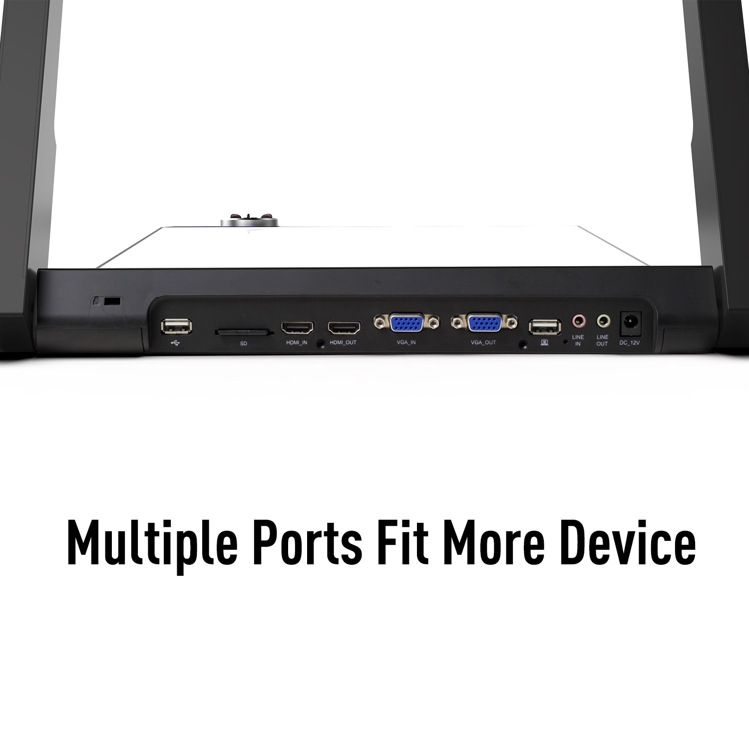 Optična dokumentna kamera Joyusing V2XP je opremljena s Sonyjevim 1/3,2-palčnim senzorjem in zagotavlja ločljivost 3264 × 2448 s hitrostjo do 60 slik na sekundo. S 14-kratno optično povečavo in 10-kratno digitalno povečavo zajame podrobne slike dokumentov in predmetov, zato je idealna za predstavitve in izobraževanje. Največje območje snemanja A3 (297 mm*420 mm) zagotavlja, da so zajeti tudi veliki dokumenti. Fotoaparat vključuje 5-palčni LCD-zaslon za predogled z gumbi na dotik za enostavno upravljanje, samodejno ostrenje za jasno sliko in nastavljivo osvetlitev LED za optimalno osvetlitev. Zložljiva mehanska roka omogoča priročno upravljanje z eno roko.