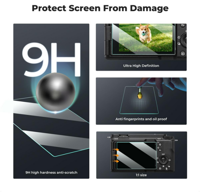 Komplet za zaščito fotoaparata K&F vključuje 3 ščitnike zaslona, 3 pokrovčke za vročo nogo in krpo za vakuumsko čiščenje, ki so zasnovani posebej za fotoaparate Sony ZV-E1, A7 IV, A6700 in A7CII. Komplet zagotavlja celovito zaščito zaslona in območja vroče pete fotoaparata, omogoča pa enostavno namestitev in vrhunsko vzdržljivost.