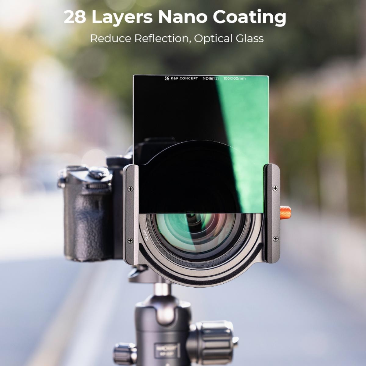 K&F Concept 100×100×2 mm Nano-X ND16 kvadratni filter je zasnovan za fotografe, ki potrebujejo natančen nadzor osvetlitve in vrhunsko optično zmogljivost. Z zmanjšanjem svetlobe za 4 stopnje (1,2) omogoča daljše hitrosti zaklopa za zajemanje učinkov gibanja, kot so tekoča voda, gibajoči se oblaki in gladke vizualne podobe z dolgim časom osvetlitve brez preosvetlitve. Filter je izdelan iz vrhunskega optičnega stekla AGC in je bil podvržen finemu brušenju in dvostranskemu poliranju, da ohrani izjemno ostrino – tudi na teleobjektivih – in zagotovi čiste podrobnosti in visoko kakovost slike. Napreden 28-slojni nano premaz zmanjšuje odboje na površini, učinkovito zmanjšuje bleščanje in podvajanje slike ter izboljša natančnost barv. Površina je zaščitena pred plesnijo, vodo, praskami in oljem, kar omogoča enostavno brisanje vlage ali madežev med fotografiranjem na prostem. Filter ND16 meri 100 × 100 mm in je debel 2 mm, zato se prilega standardnim kvadratnim držalom in podpira objektive s premerom do 82 mm. Za zaščito filtra med potovanjem in shranjevanjem je priložena zaščitna torbica v slogu usnja z mehko podlogo iz gobice.