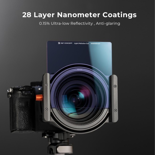 Naravni nočni filtri K&F Concept so idealna rešitev za boj proti škodljivemu vplivu svetlobnega onesnaževanja na nočno fotografijo, od mestnih pokrajin do astrofotografije. Z obojestransko tehnologijo Nano-Coating ti filtri zagotavljajo vodoodpornost in odpornost na praske ter zagotavljajo visoko ločljivost, nizko odbojnost in nič vinjetiranja. Blokirajo najpogostejše valovne dolžine svetlobnega onesnaževanja in znatno izboljšajo barve prizora. Ti filtri so izdelani iz vrhunskega japonskega optičnega stekla in imajo elegantno debelino 2 mm ter velikost 100*100 mm. Združljivi so z vrsto objektivov, vključno z objektivi Canon 16-35, Canon 24-70, Nikon 24-70, Nikon 70-200 in drugimi 52-, 55-, 58-, 62-, 67-, 72-, 77- in 82-milimetrskimi objektivi, ter brezhibno delujejo z držali blagovnih znamk Lee, Cokin, Hitech, Singh-Ray in drugih.