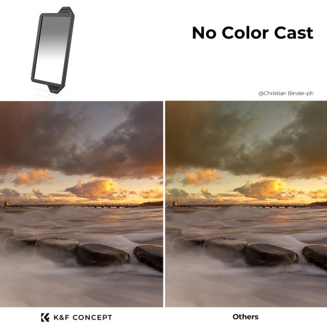 K&F Concept 100×150×2 mm trdi kvadratni filter GND8 ponuja nagrajeno zaščito objektiva, vrhunsko optično steklo AGC s 36-slojnim premazom in je idealen za uravnoteženje svetlega neba in temnejšega prednjega plana. Vključuje zaščitni okvir in PU usnjeno torbico za shranjevanje.