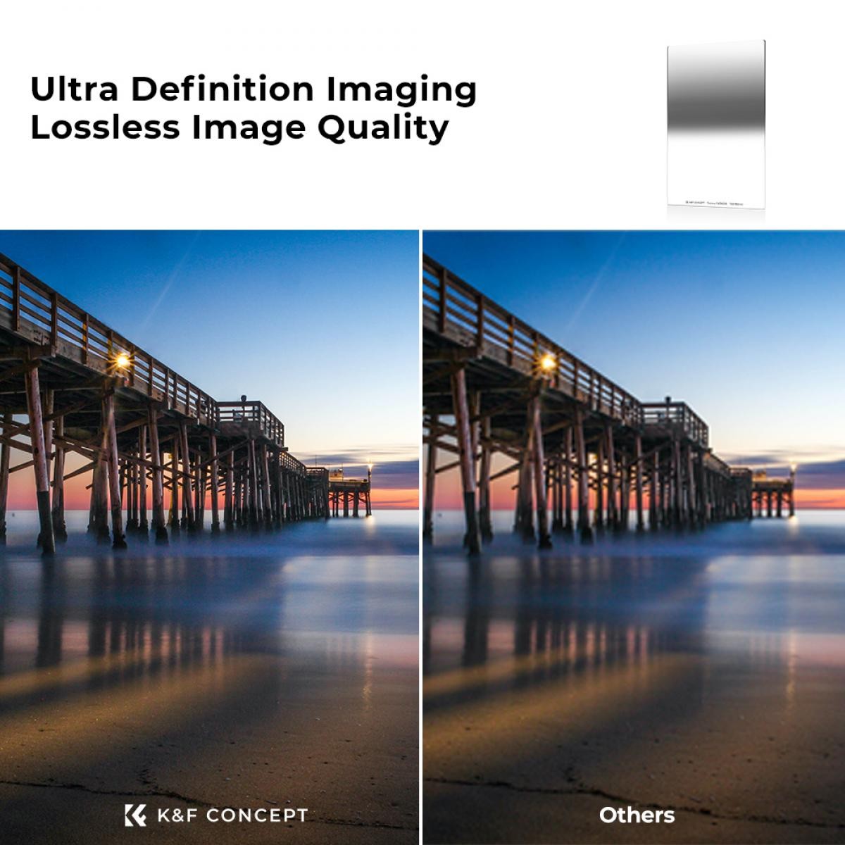 Filter K&F Concept 100×150×2 mm Square Reverse Graduated GND8 je zasnovan za fotografiranje sončnega vzhoda in zahoda, ko je najsvetlejša svetloba ob obzorju. Izdelan je iz vrhunskega japonskega optičnega stekla z naprednim postopnim premazom, ki zagotavlja izjemno jasnost, natančnost barv in enakomerno prepustnost svetlobe od UV do bližnje infrardeče. Dvostransko polirana površina z nano premazom je vodotesna, odporna proti praskam in protirefleksna, kar zagotavlja čiste rezultate visoke ločljivosti in uravnoteženo osvetlitev v zahtevnih scenah. Združljiv s standardnimi 100-milimetrskimi nosilci filtrov, vključno z Lee in Cokin Z Series.