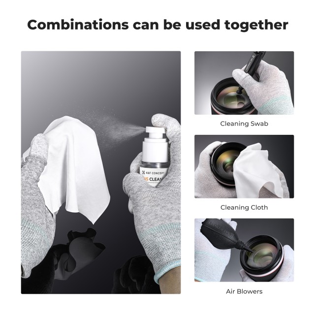 K&F Concept Komplet za čiščenje objektivov z razpršilom in mikrovlaken, nevnetljivo čistilo za objektive fotoaparatov in digitalne senzorje, za prevlečene objektive, daljnoglede, teleskope, fotoaparate in očala