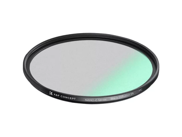 Filter K&F Concept 40,5 mm C Series Black Mist 1/4 doda mehak, kinematografski difuzijski učinek z zmanjšanjem kontrasta in bleščanja. Z ultra tankim aluminijastim okvirjem in večplastnim zelenim premazom je idealen za portrete, videoposnetke in ustvarjalno fotografijo.