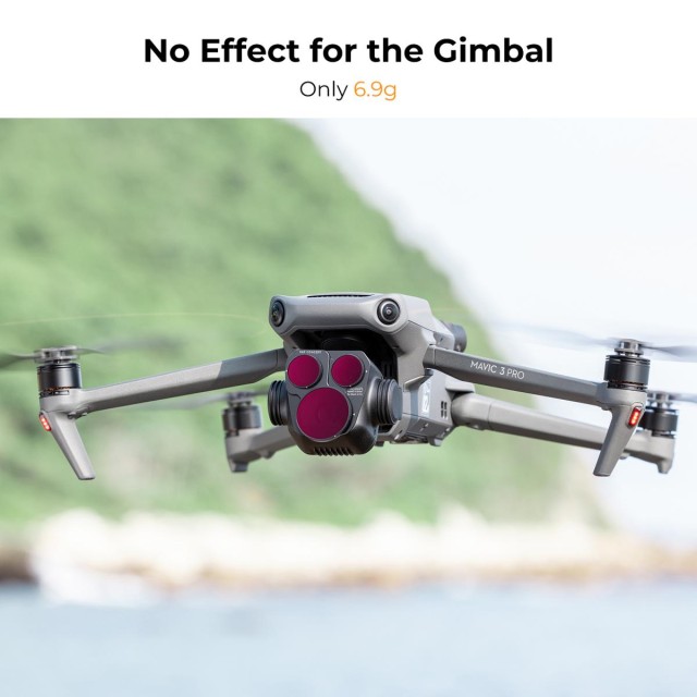 * 【Lahka in varna za gimbal】K&F Concept zasnova lahkega okvirja (vsak filter NDPL tehta 6,9 g) zagotavlja, da gre vsak okvir filtra skozi strog test lahkotnosti, brez škodljivih učinkov na gimbal vašega DJI Mavic 3 Pro.