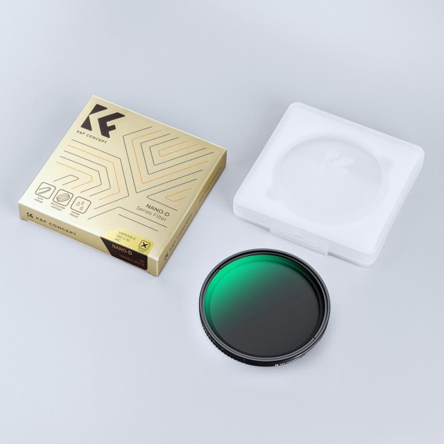 Spremenljivi filter K&F Concept ND2-ND32 je namenjen tehnikam dolge ekspozicije in zameglitve gibanja pri spreminjajoči se svetlobi. Zmanjša vnos svetlobe od 1 do 5 stopenj, ne da bi vplival na ravnovesje barv, primeren za sredi dneva ali blago sonce. njegov spremenljivi filter ND2-ND32 iz serije K&F Concept Nano-Dazzle je izdelan iz optičnega stekla HD AGC, skupaj 24 večplastnih prevlek pomaga odbijati vodo in prah ter učinkovito zmanjšuje odboj od samega filtra in bleščanje. površina objektiva je oksidirana in peskana, kar učinkovito preprečuje vstop blodeče svetlobe in upočasni odboj kovinske površine.