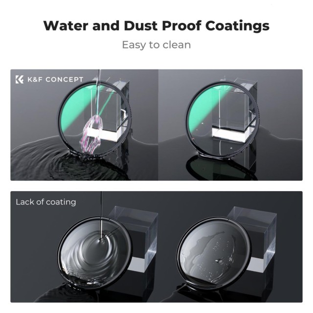 Po optičnem brušenju je stekleni filter opremljen z visokotehnološko plastjo, ki je vodoodporna, odporna proti praskam in odbija mast. Ima visoko odpornost proti poškodbam brez vpliva na kakovost slike. Tudi ob onesnaženju s kapljicami vode ali olja se filter lahko enostavno očisti.