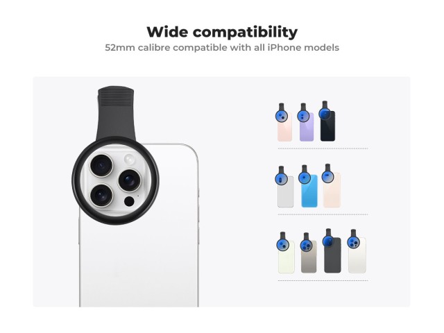 Filter CPL učinkovito zmanjšuje bleščanje in odseve z nekovinskih površin, kot so voda, steklo in listje. S povečanjem nasičenosti barv in kontrasta naredi nebo bolj modro, zelenje pa bolj živo, kar oživi vaše fotografije. Ta filter je združljiv s pametnimi telefoni, ki imajo 52-milimetrski nastavek za pritrditev filtra, zato je vsestransko uporaben v različnih napravah.