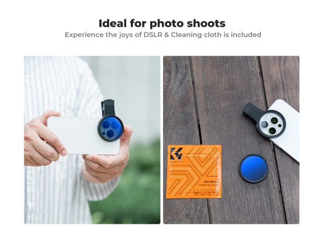 S K&F 52MM univerzalnim držalom za mobilni telefon s filtrom CPL (krožni polarizator) spremenite svoj pametni telefon v zmogljivo fotografsko orodje. Ta nepogrešljiv pripomoček je zasnovan tako, da z zmanjšanjem odsevov in povečanjem nasičenosti barv znatno izboljša vašo fotografijo, zaradi česar dobite osupljive slike z izboljšano jasnostjo.