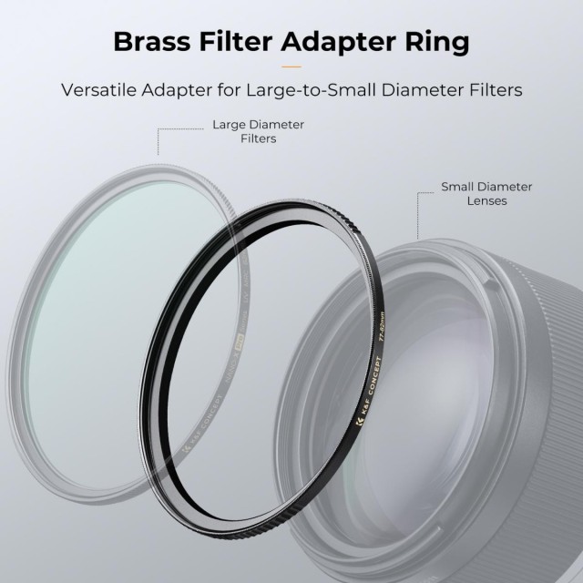K&F 58-67 mm Step Up medeninasti filtrski adapterski obroč. Združljiv z vsemi 58 mm objektivi fotoaparatov in 67 mm dodatno opremo (kot so filtri, senčila, bliskavice in pretvorniki objektivov). Velikost navoja vašega objektiva je natisnjena pod pokrovčkom objektiva ali napisana na ohišju objektiva.