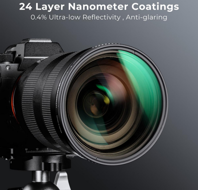 Filter K&F 58MM serije D s spremenljivim ND filtrom omogoča vsestranski nadzor svetlobe od ND2 do ND32, kar je popolno za dolge ekspozicije in zameglitev gibanja v različnih svetlobnih pogojih. Ta filter s 24 plastmi optičnega stekla z nano prevleko zmanjšuje odseve in bleščanje ter hkrati ohranja ravnovesje barv.