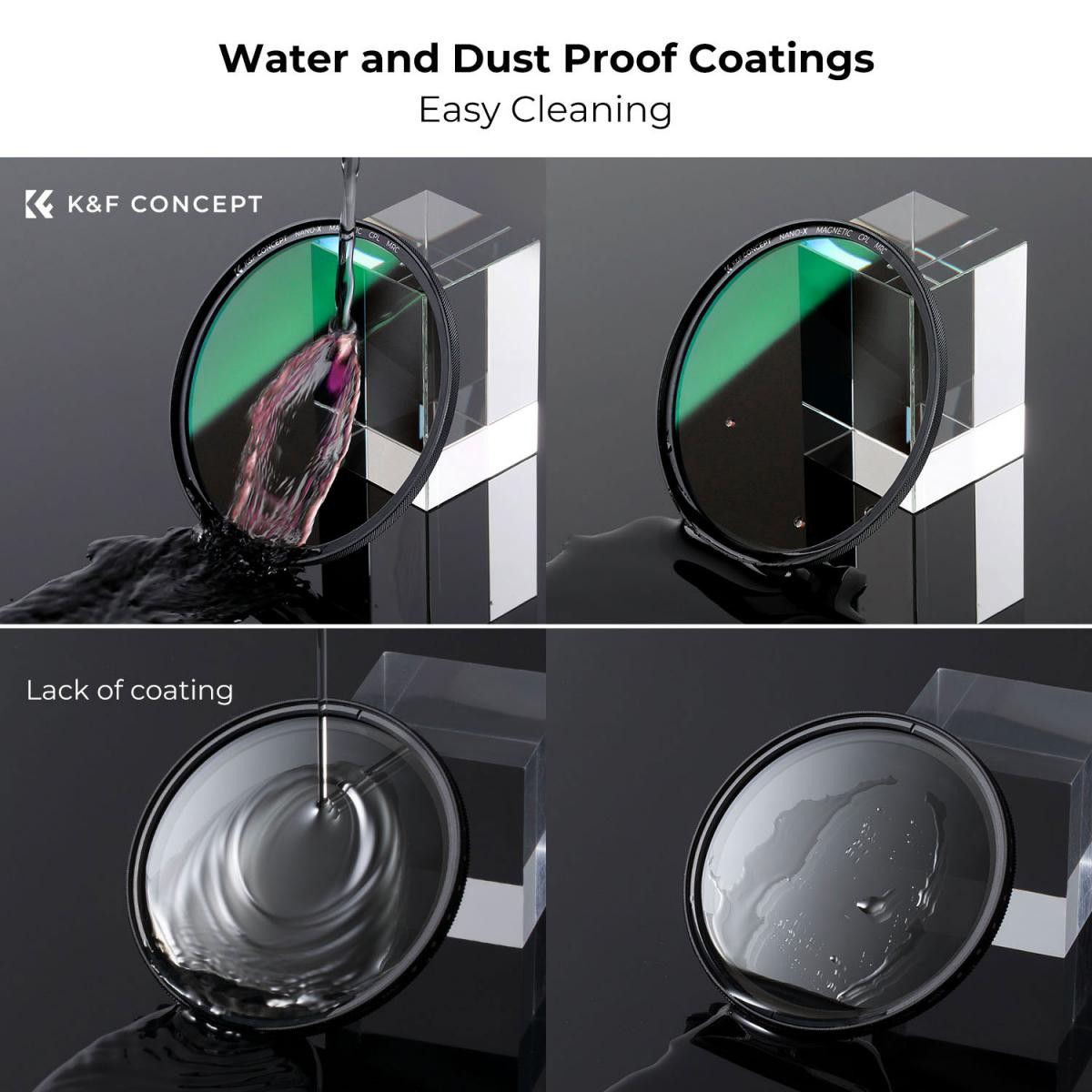 Z magnetnim CPL filtrom K&F 58MM + magnetnim osnovnim obročnim kompletom zajemajte jasne, živahne slike. Ta krožni polarizator učinkovito odpravlja odsevanje z nekovinskih površin, s čimer izboljša jasnost motiva in nasičenost barv. Filter je izdelan iz 28-slojnega nano premaza in protirefleksijske zelene folije, zmanjšuje bleščanje, blokira UV-žarke in maksimira prepustnost svetlobe, hkrati pa zagotavlja zaščito pred prahom, vodo, umazanijo in praskami. Objektiv je obojestransko poliran za visoko zvestobo in realistično reprodukcijo barv, tudi pri teleobjektivih. Priloženi magnetni adapter omogoča hitro, enosekundno namestitev drugih magnetnih filtrov, kar je veliko hitreje kot pri tradicionalnih filtrih z navojem. Ultra tanek CNC-obdelan okvir preprečuje vinjetiranje in zagotavlja ostre slike profesionalne kakovosti s širokokotnimi objektivi.