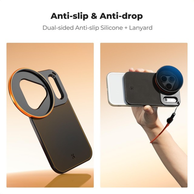 Izboljšajte fotografiranje s svojim iPhone 17 Pro Max z dvostranskim magnetnim nosilcem filtra K&F 58 mm Screw-In Magsafe. Nosilec je posebej zasnovan za iPhone 17 Pro Max, njegov trikotni izrez za objektiv in pravokotna odprtina Deco se popolnoma ujemata z objektivom, bliskavico in antenami, kar preprečuje uhajanje svetlobe in motnje signala, hkrati pa ohranja polno funkcionalnost kamere.