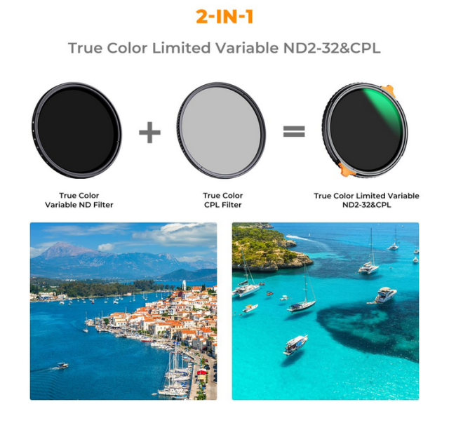 Večnamenski filter K&F 62 mm True Color ND2~32+CPL združuje prednosti filtrov ND in CPL v eni enoti. S tem filtrom lahko nadzorujete vnos svetlobe, zmanjšate odseve z nekovinskih površin ter izboljšate barve in kontrast na posnetkih. Opremljen je z naprednim samozapornim okvirjem, ki se brezstopenjsko vrti med 1 in 5 stopnjami (ND2-32) in preprečuje neželene navzkrižne vzorce. Ta filter je izdelan iz uvoženega optičnega stekla AGC z 28-slojno prevleko, zato je vodoodporen, odporen na praske in zagotavlja slike visoke ločljivosti z resnično natančnostjo barv.