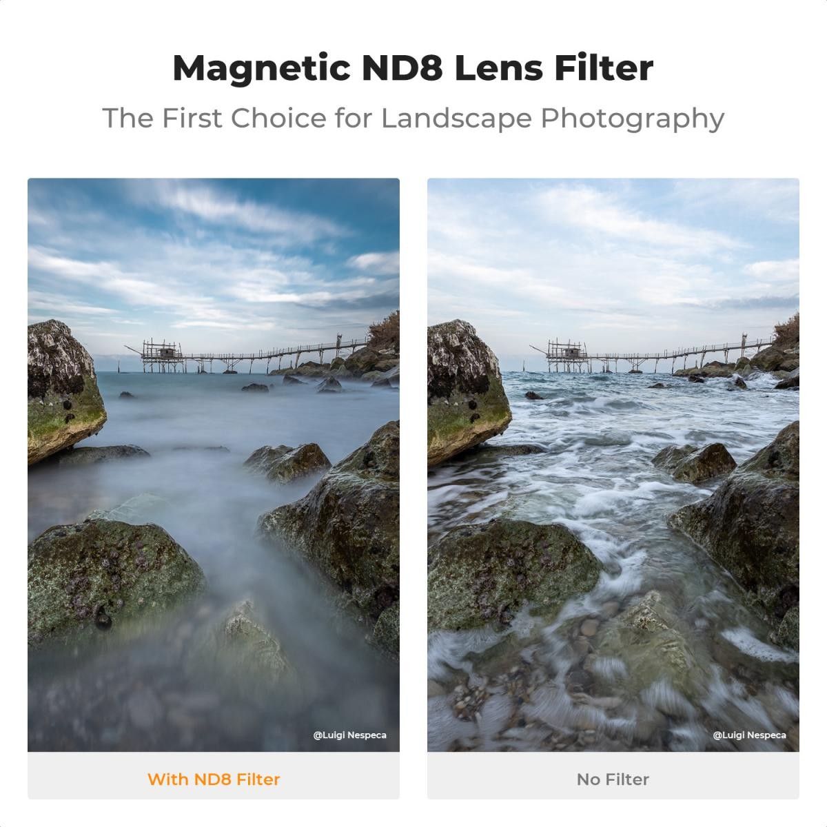 Izboljšajte svoj fotografski delovni tok z magnetnim filtrom K&F 62 mm NANO-X-ND8, ki je zasnovan za fotografe, ki si želijo enostavno rokovanje in izjemno kakovost slike. Ta filter ND8 (0,9) zagotavlja tri stopnje zmanjšanja svetlobe brez barvnih sprememb, kar ga naredi idealnega za dolge osvetlitve, učinke zamegljenosti zaradi gibanja ali fotografiranje v svetlih okoljih. Napreden 16-slojni nano premaz z antirefleksnim zelenim filmom izboljša prepustnost svetlobe, zmanjša bleščanje, filtrira UV-žarke in zagotavlja naravne, uravnotežene barve. Optično polirano steklo je dodatno ojačano z visokotehnološkim zaščitnim premazom, ki je odporen proti plesni, vodi, praskam in olju, kar zagotavlja trajnost brez poseganja v jasnost slike. Zaradi magnetne zasnove namestitev in odstranitev trajata le sekundo. Priloženi magnetni pokrov objektiva iz aluminijeve zlitine, ki se uporablja v vesoljski industriji, podpira magnetno in navojno pritrditev, kar omogoča prilagodljivo, dvojno funkcionalnost. Paket vključuje magnetni filter ND8, magnetni kovinski pokrov in pritrdilni obroč.