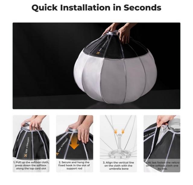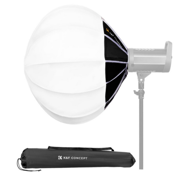 Z mehkim svetlobnim okvirjem K&F 65CM Lantern Soft Light Box dosežete enakomerno, 360-stopinjsko mehko osvetlitev, ki je idealna za studijsko uporabo. Idealen za fotografe in filmske ustvarjalce, ki potrebujejo učinkovite in prenosne svetlobne rešitve.