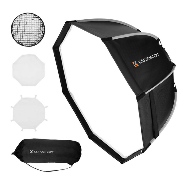 K&F 65CM oktagonalni softbox s hitrim sproščanjem je idealna dodatna oprema za fotografe in snemalce, ki želijo doseči vrhunske rezultate osvetlitve. Ta 26-palčni (65-centimetrski) softbox je odlična rešitev za izboljšanje portretov, porok, modne fotografije, snemanja videoposnetkov, prenosa v živo in intervjujev.