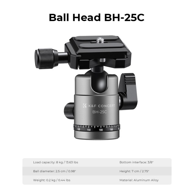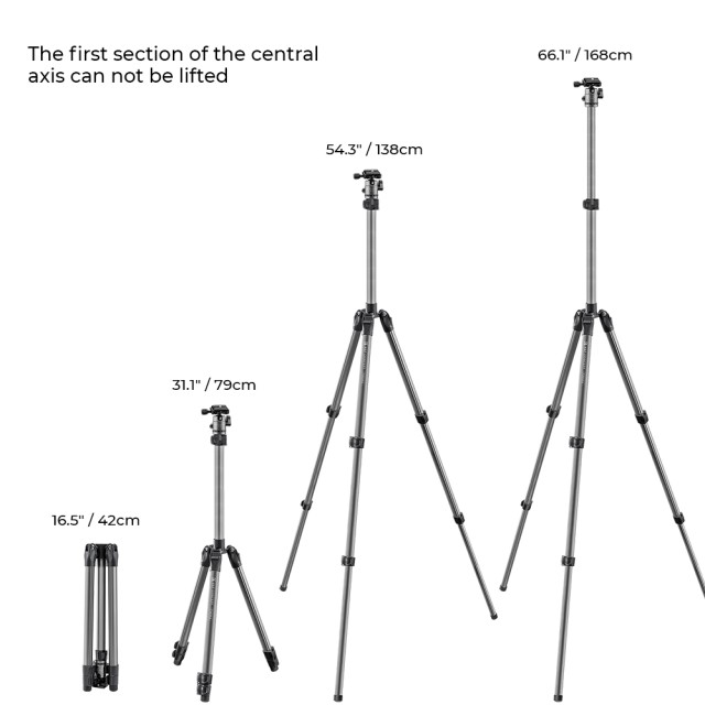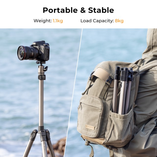 Izkusite neprimerljivo prilagodljivost s stativom K&F Concept s tridelno nogo, ki hitro prilagodi delovno višino od 79 cm/31,1'' do 168 cm/66,1'', kar zadovolji 90 % fotografskih zahtev glede višine. Kompaktna zložena dolžina 42 cm/16,5'' zagotavlja brezskrbno potovanje. Stativ se ponaša s 360-stopinjskim panoramskim kovinskim krogličnim glavnikom CNC, ki zagotavlja varno nosilnost 8 kg/17,6 kg za nemoteno panoramsko fotografiranje. Sistem hitrega zaklepanja noge omogoča enostavno upravljanje z eno roko, kar prihrani čas in vam omogoča, da se osredotočite na umetnost fotografiranja. Ta stativ tehta le 1,1 kg/2,42 kg, zato spreminja pravila igre za fotografiranje na potovanjih na prostem. Uživajte v izboljšani združljivosti s standardnim 1/4-palčnim navojem, zaradi česar je primeren za večino ploščic Arca-Swiss s hitrim sproščanjem, fotoaparate, DSLR-je, projektorje, teleskope in celo mobilne telefone za selfije, prenose v živo in snemanje s časovnim zamikom s sponko za mobilni telefon. Izboljšajte svojo fotografijo z vrhunskim potovalnim spremljevalcem.