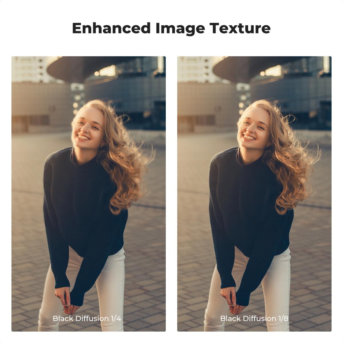 Ultra tanek 3,3 mm CNC-obdelan aluminijast okvir zmanjšuje vinjetiranje na širokokotnih in teleobjektivih, medtem ko teksturirana protizdrsna zasnova zagotavlja varno in enostavno namestitev. Komplet vključuje difuzijske moči 1/4 in 1/8, kar ustvarjalcem omogoča fleksibilnost pri izbiri med drznim kinematografskim razcvetom ali subtilnimi mehčalnimi učinki.