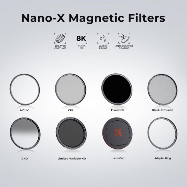 Magnetni filter K&F 72MM NANO-X CPL izboljša jasnost slike in nasičenost barv, hkrati pa zmanjša odsevanje. Namesti se v sekundi, ima ultratanken CNC aluminijast okvir in trajno vodoodporno, proti praskam zaščiteno optiko z zelenim premazom.