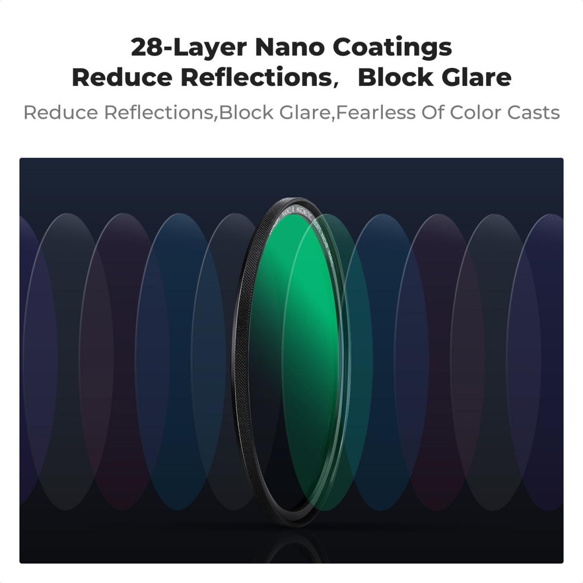 Komplet 5-delnih magnetnih filtrov K&F Concept 77 mmvključuje filtre GND8, ND8, ND64 in ND1000 ter magnetni adapter, ki omogoča takojšnjo zamenjavo filtrov v 1 sekundi, vrhunsko večplastno optično steklo AGC in ultra tanek okvir brez vinjetiranja – idealno za fotografiranje pokrajin in fotografiranje z dolgimi ekspozicijami.