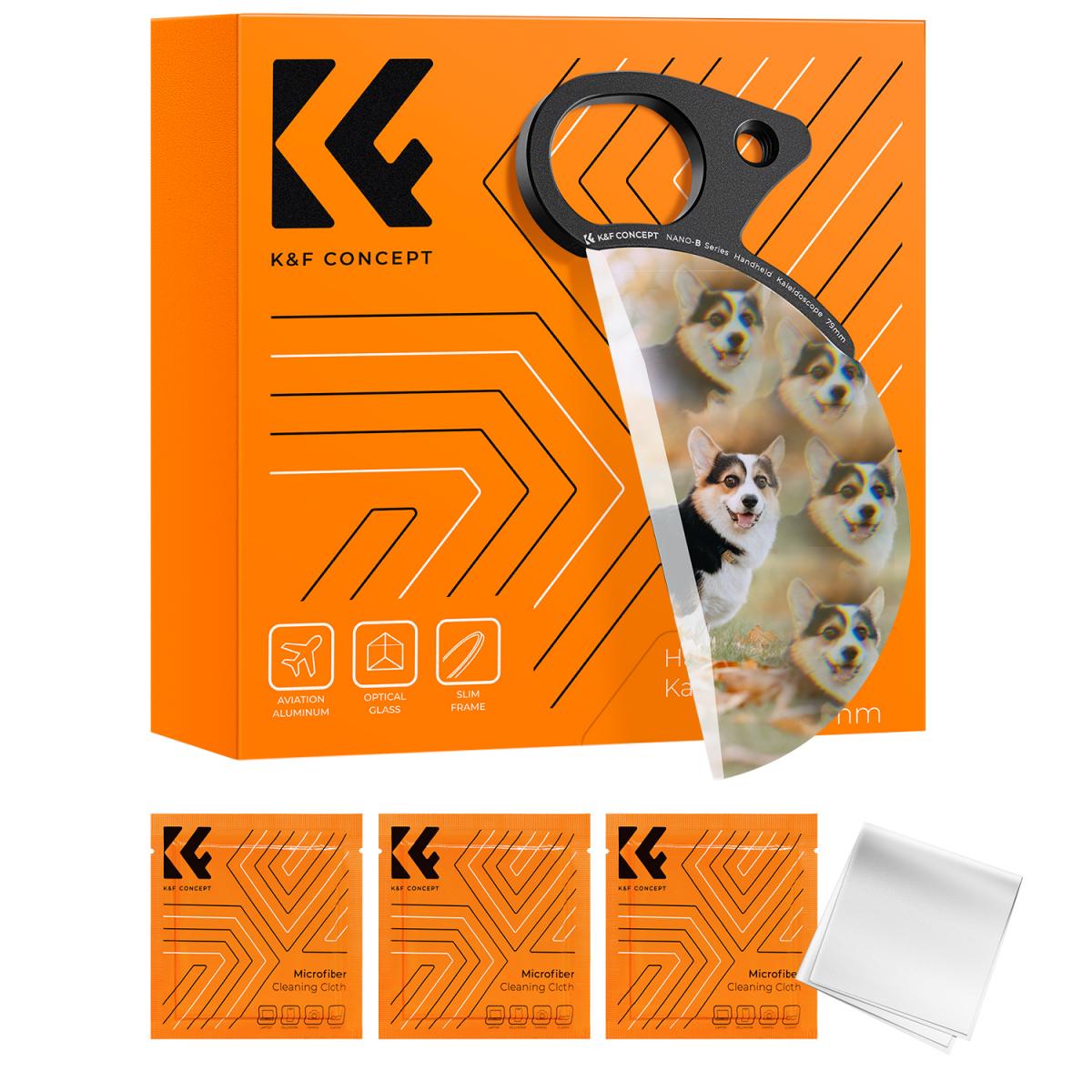 Ta ročni kalejdoskopski filter podjetja K&F Concept lahko s posebno optično zasnovo ustvari edinstvene vizualne učinke, svetlobne lise, ki obkrožajo predmet ali žarišče, in edinstveno obročasto svetlobno liso. Posebno steklo K9 - ročni kalejdoskopski filter je izdelan iz optičnega stekla K9 z visoko prepustnostjo svetlobe in odličnim prikazom barv, kar zagotavlja jasno in pristno sliko.