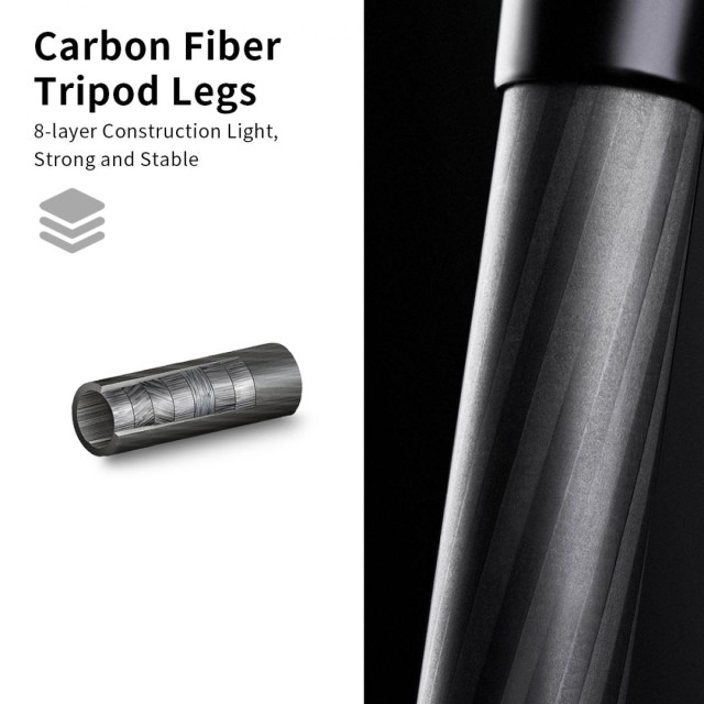 Širok razpon višine od 21,3"/54 cm do 68,9"/175 cm, zaradi česar je stativ iz ogljikovih vlaken prilagodljiv za širok razpon snemanja. Lahko ga spremenite v monopod, kar omogoča še en enostaven način fotografiranja.
