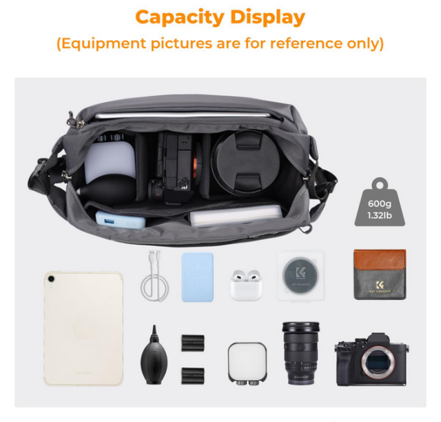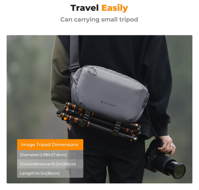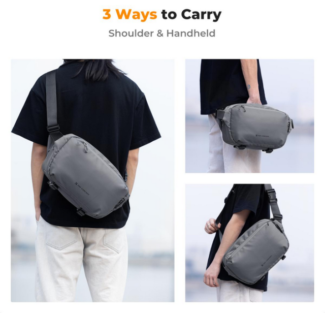 Torba K&F Alpha Sling Bag 10L (siva ) združuje praktičnost, udobje in varnost v elegantni, večnamenski zasnovi. Ta torba s prostornino 10 l je kompaktna, a dovolj prostorna, da vanjo lahko spravite en fotoaparat in dva objektiva ter bistvene dodatke in osebne predmete.