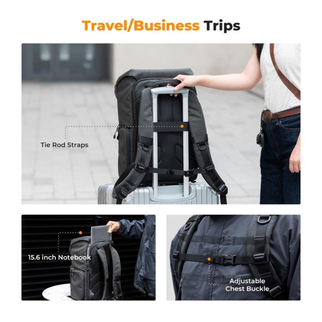 * 【Izjemno udobje in prijaznost za potovanja】Nastavljiva prsna zaponka skupaj z zračnim, hitro sušečim mrežastim oblazinjenim hrbtom in naramnicami pomaga uravnotežiti in zmanjšati pritisk bremena na vaša ramena, hrbet in pas. Nahrbtnik za fotoaparat zagotavlja popolno udobje tudi ob polni obremenitvi. Opremljen je tudi s trakom za voziček, ki ga lahko pritrdite na kovček.