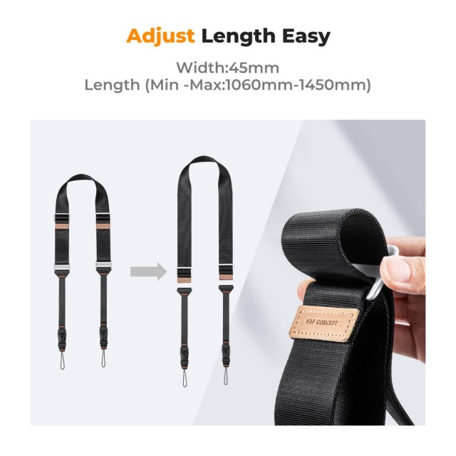 K&F Concept 45 mm trak za fotoaparat za vrat s hitrim sprožilcem za fotografe, nastavljiv trak za fotoaparat, združljiv z Nikon Canon Sony Olympus DSLR fotoaparatom, črn. Varnostna karabinka UTX ščiti fotoaparat pred nevarnostjo nenamernih padcev in povečuje varnost