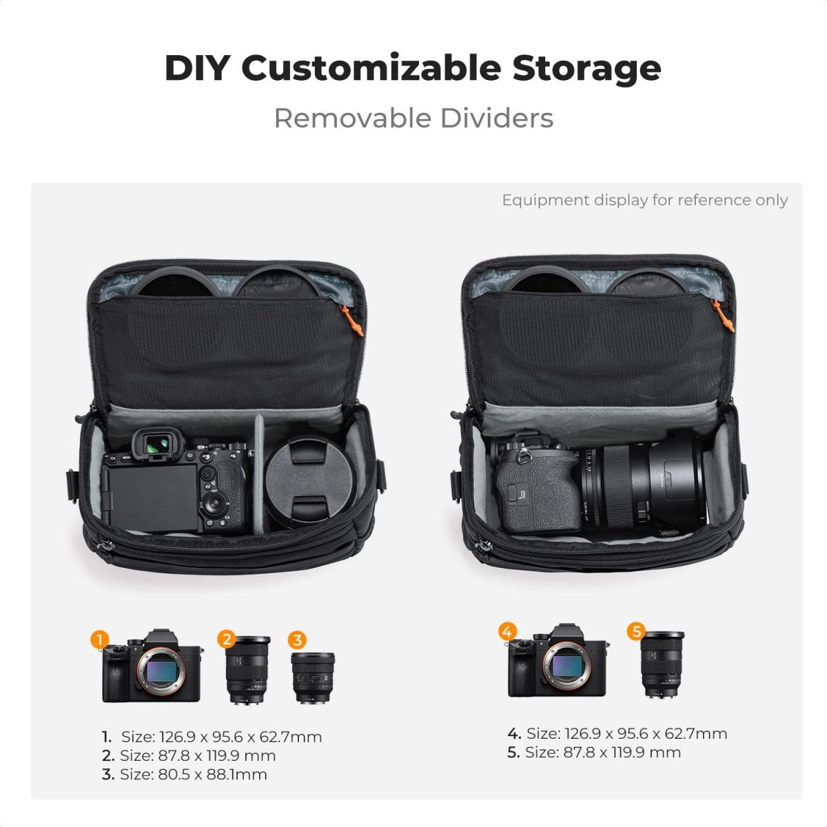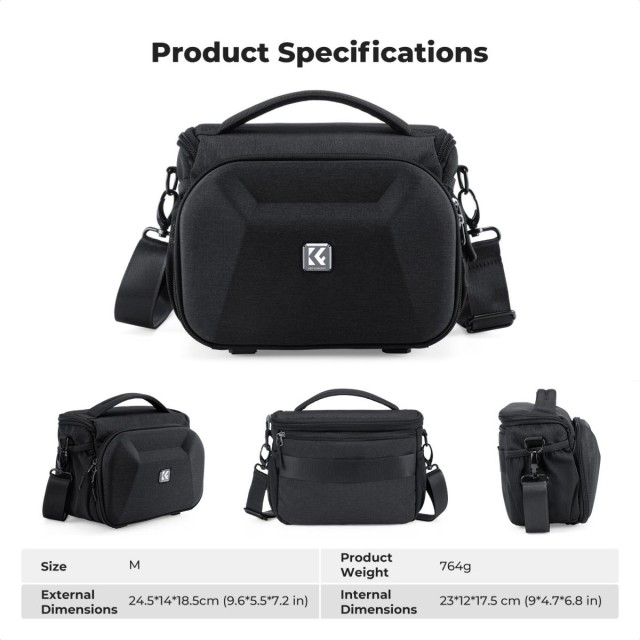 K&F Concept Camera Sling Bag – vodotesna torba za DSLR/brezzrcalne kamere, s trdim ohišjem in držalom za stativ. Velikost: M.