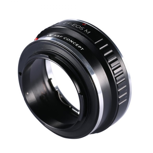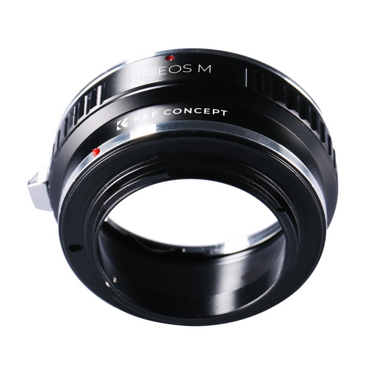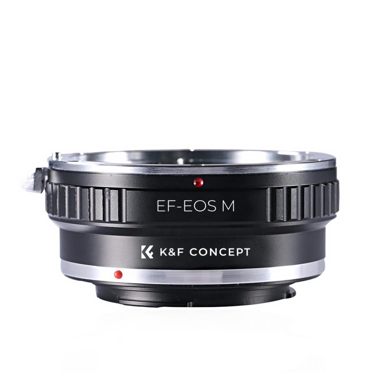 K&F Concept EF/EF-S do Canon EOS M objektivni adapter omogoča namestitev objektivov Canon EF in EF-S na brezzrcalne fotoaparate EOS M. Izdelan je iz trpežne medenine in aluminija, zagotavlja natančno in stabilno namestitev z ročnim upravljanjem in neskončnim ostrenjem. Ni združljiv z objektivi STM, kot sta EF 50 mm f/1,8 STM ali EF 18-135 IS STM.