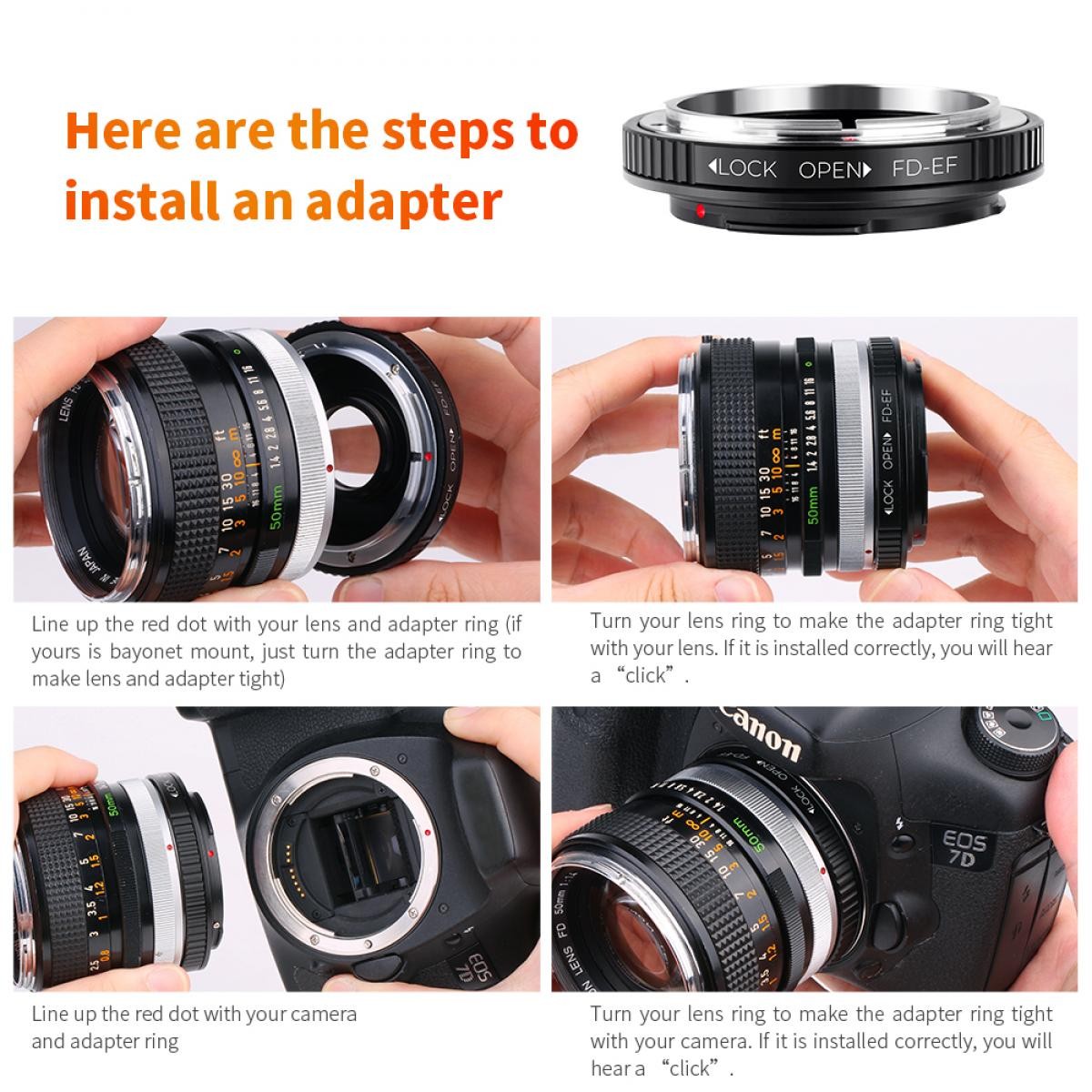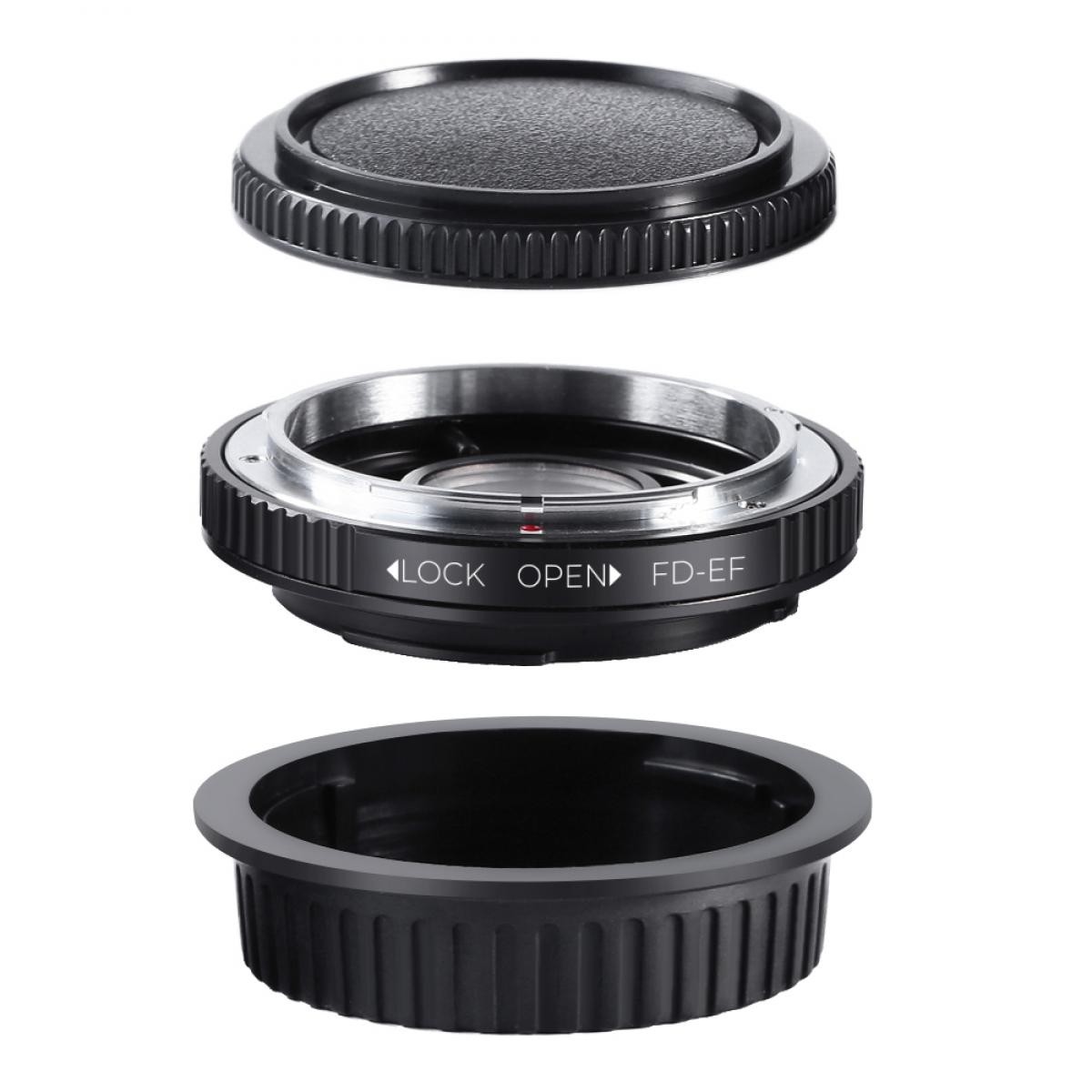 K&F Concept Canon FD na Canon EOS objektivni adapter z optičnim steklom omogoča namestitev klasičnih FD/FL objektivov na sodobne Canon EOS EF/EF-S DSLR kamere, ponuja ročno upravljanje, neskončno ostrenje in trpežno kovinsko konstrukcijo.