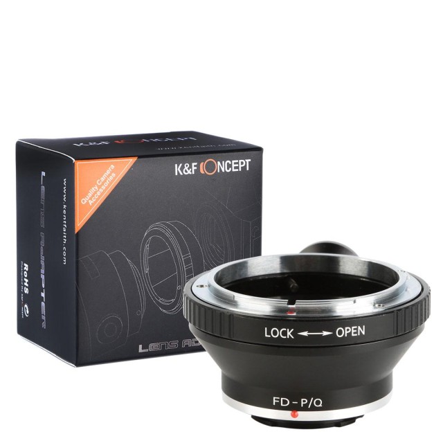 K&F Canon FD na Pentax Q Mount Adapter s stativnim nosilcem omogoča uporabo Canon FD objektivov na fotoaparatih serije Pentax Q, vključno z modeli Q, Q10, Q7 in Q-S1. Izdelan je iz trpežne medenine in aluminija, zagotavlja natančno, stabilno in dolgotrajno delovanje s popolnim ročnim nadzorom in podporo za neskončno ostrenje. Priloženi stativni nosilec zagotavlja stabilnost za težje objektive.