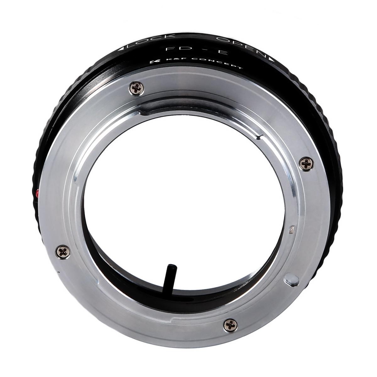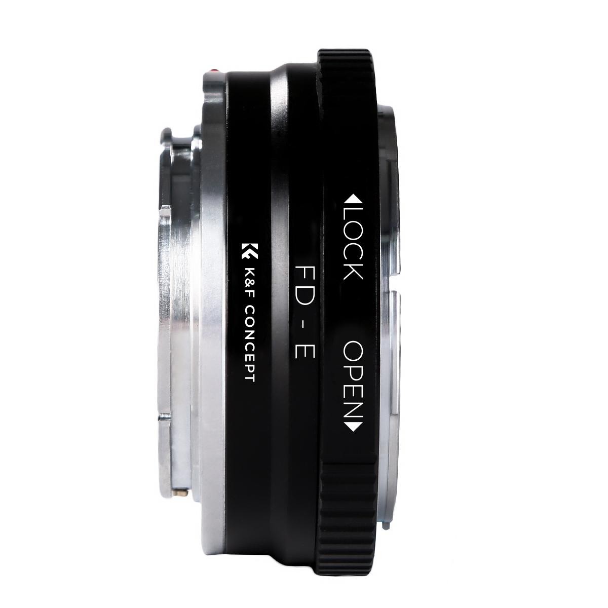K&F Canon FD/FL na Sony E-Mount bakreni adapter omogoča uporabo objektivov Canon FD in FL na brezoglednih fotoaparatih Sony E-mount. Ima trpežno medeno konstrukcijo, natančno ročno upravljanje in podporo za neskončno ostrenje.