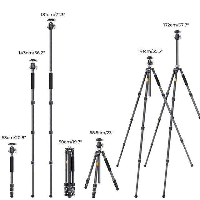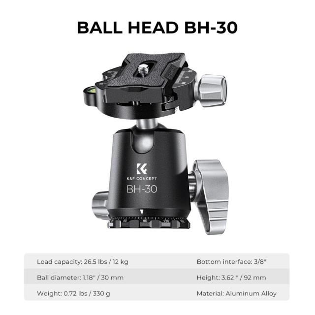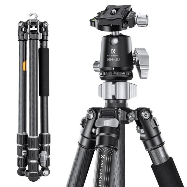 K&F Concept X254C4+BH-30 je lahek, a visoko zmogljiv stativ iz ogljikovih vlaken s 30 mm kovinsko kroglično glavo, izdelano s tehnologijo CNC, nosilnostjo 12 kg in možnostjo 360-stopinjskega obračanja za natančno fotografiranje in snemanje.