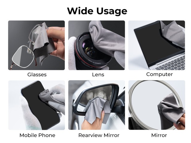 Te krpe, izdelane iz vrhunskih mikrovlaken, brez težav vpijajo in odstranjujejo prstne odtise, olje, prah in umazanijo ter zagotavljajo čisto površino brez lis, ne da bi za seboj puščale lise. Zaradi kompaktne velikosti jih je mogoče priročno namestiti v torbe za fotoaparate, etuije za očala ali torbe za prenosne računalnike, zato so idealne za čiščenje na poti.