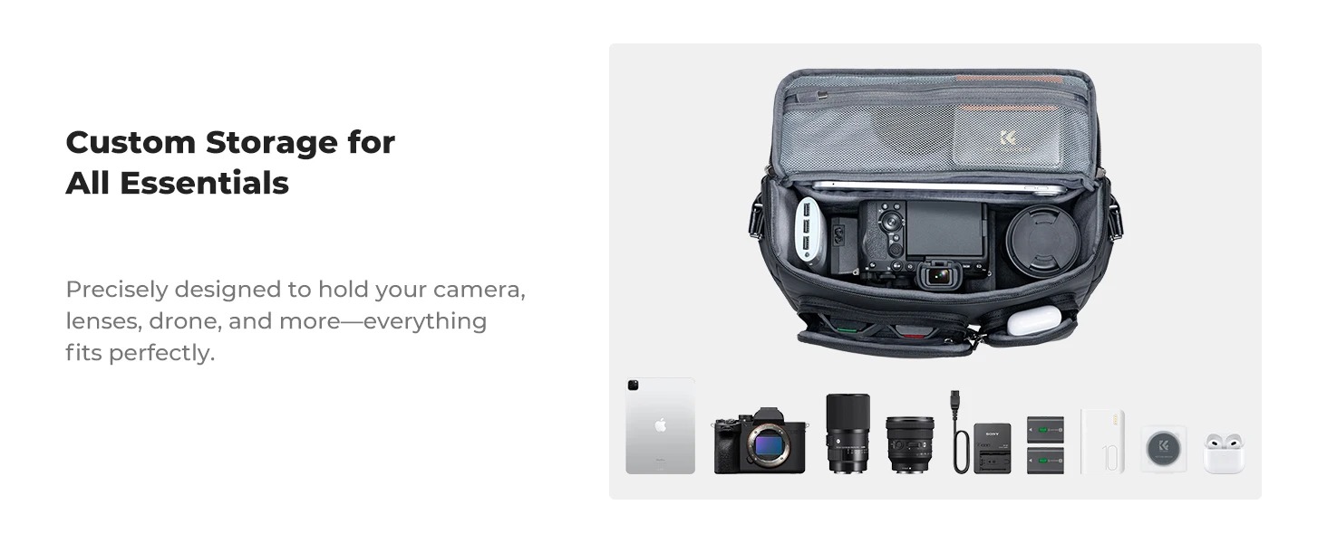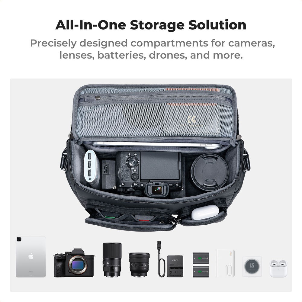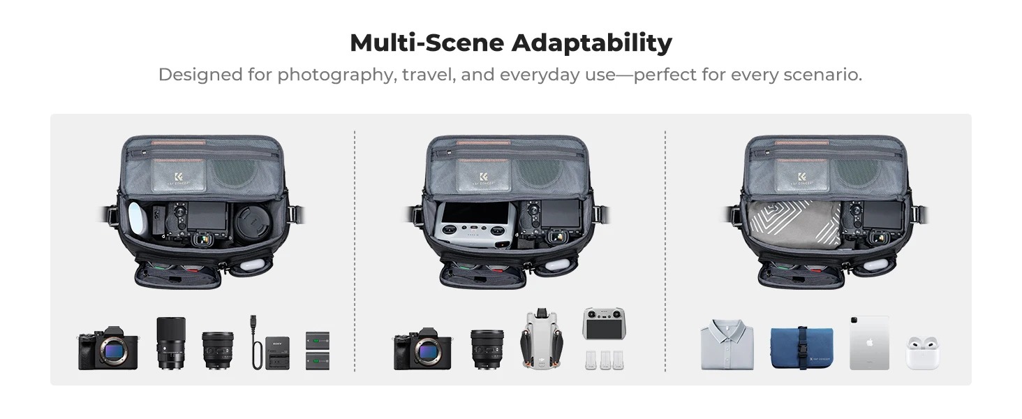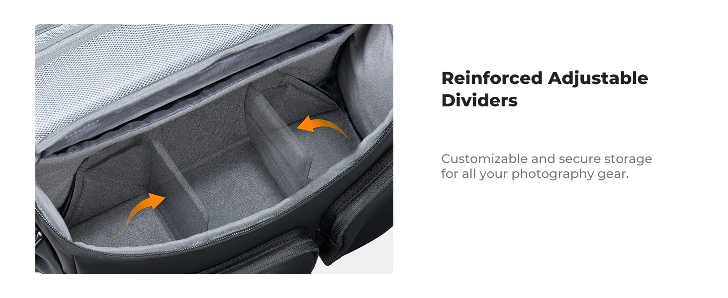 • VEČNAMENSKA: Ta torba za fotoaparat z ramenskim trakom ima 1 odstranljivo oblazinjeno pregradno steno za prilagojeno shranjevanje. Fotoaparat in druge predmete lahko ločite in zaščitite, prav tako pa lahko prilagodite glavni predel za različne velikosti fotoaparata. Po odstranitvi notranjih pregradnih sten jo lahko enostavno spremenite iz torbe zaDSLR fotoaparat v stilsko torbo za vsakdanjo rabo.