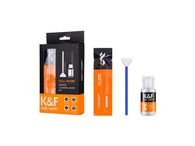 K&F Concept komplet za čiščenje digitalnih zrcalno-refleksnih fotoaparatov ali zrcalno-refleksnih fotoaparatov s polnoformatnimi senzorji (10 čistilnih palčk + 20 ml čistilne tekočine).