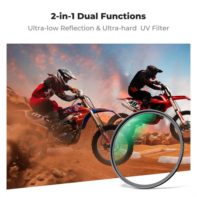 UV-filter ima dve funkciji, prva je preprečevanje vpliva UV-žarkov na kamero CCD in oslabitev modrega tona na slikah zaradi UV-žarkov, kar zagotavlja jasnost in barve. Druga naloga je zaščita objektiva pred poškodbami zaradi udarcev, vode, prahu, prask, olja in prstnih odtisov. Udarno odporen kaljeni UV-filter KF Concept je izdelan z uvozom japonskega stekla…