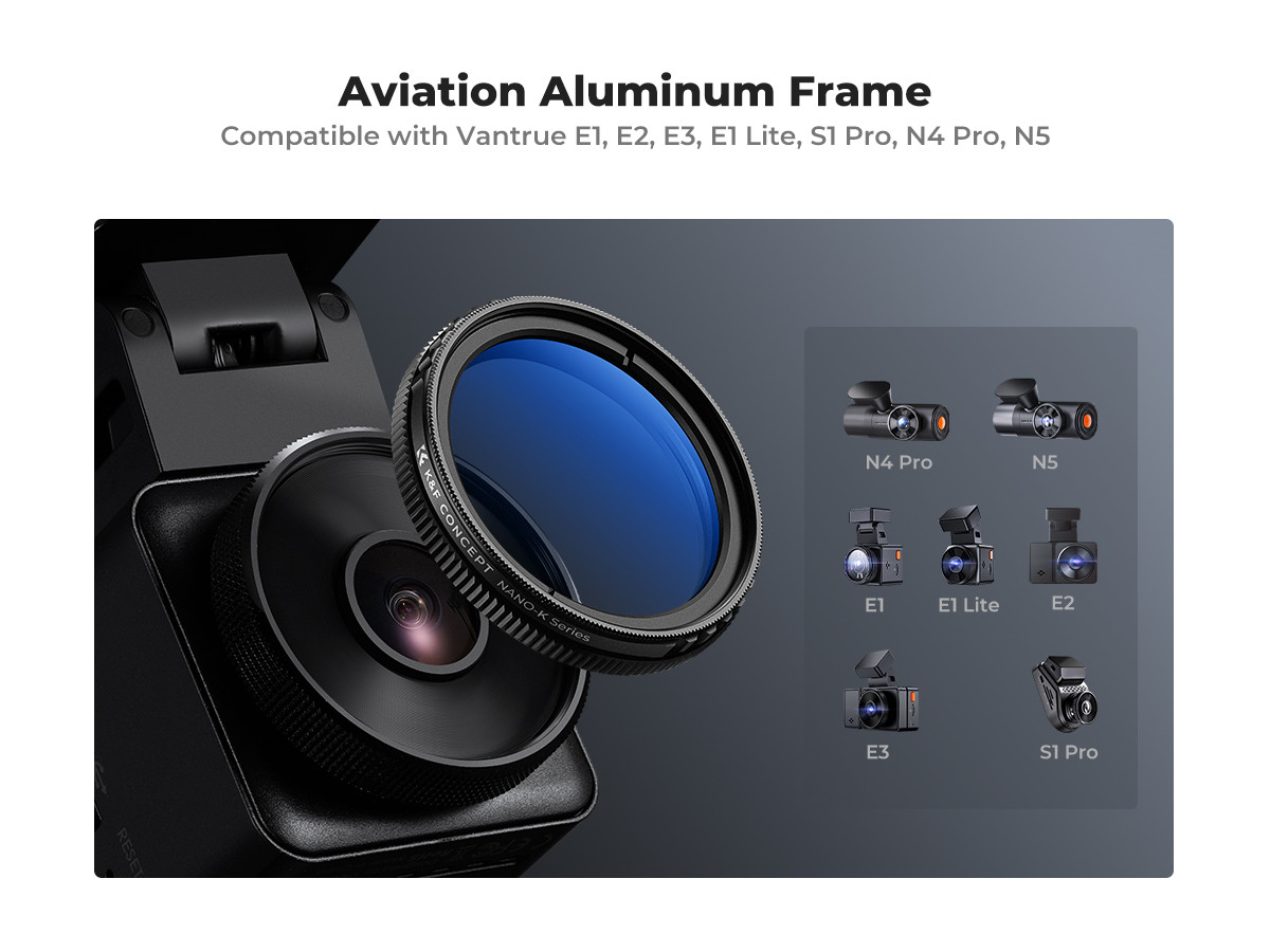 Izboljšajte svoje posnetke vožnje s 40 mm ultra tankim krožnim polarizacijskim filtrom CPL podjetja K&F Concept, ki je posebej zasnovan za kamere Vantrue, vključno z N5, N4Pro, S1Pro, E1, E2, E3 in E1 Lite. Ta filter je bistvenega pomena za vse, ki želijo izboljšati kakovost slike in hkrati zmanjšati bleščanje in odseve z nekovinskih površin.