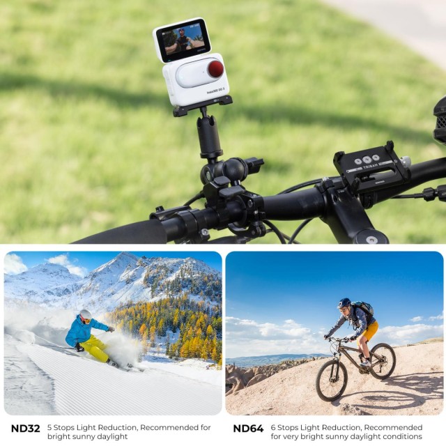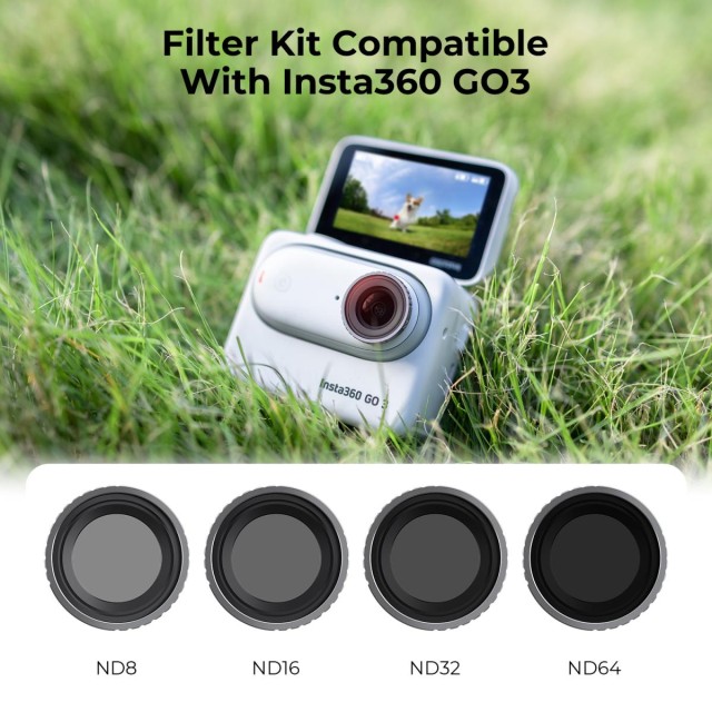 Akcijsko kamero Insta360 GO 3 izboljšajte s kompletom filtrov, ki vsebuje filtre ND8, ND16, ND32 in ND64 za vsestransko zmanjšanje svetlobe. Filtri, izdelani za optimalno delovanje, so izdelani iz uvoženega optičnega stekla AGC z večplastno prevleko, ki zmanjšuje bleščanje in zagotavlja resnično obnovo barv. 28 večplastnih premazov na obeh straneh zmanjšuje bleščanje, bleščanje in nudi zaščito pred vodo, praskami, prahom in oljem. Ta komplet zagotavlja učinek zmanjšanja svetlobe za 3-6 stopenj, kar ustreza različnim svetlobnim pogojem, od oblačnih do svetlih sončnih dni. Z namestitvijo z navojnimi vijaki in okvirjem iz letalske aluminijeve zlitine ga je enostavno namestiti in odstraniti, kar zagotavlja popolno ujemanje s podstavkom objektiva fotoaparata. S tem obsežnim kompletom filtrov izboljšajte svoje fotografije s fotoaparatom Insta360 GO 3.