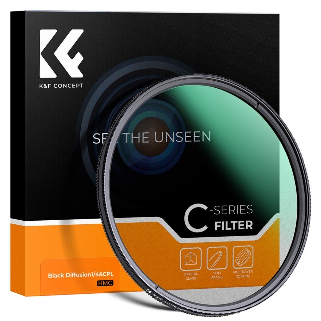 Večnamenski filter K&F Concept 62 mm CPL + Black Mist 1/4 združuje ustvarjalno difuzijo z učinkovito polarizacijo in fotografom ter videografom ponuja izboljšano nadzorovanje kontrasta, zmanjšane odboje in mehak kinematografski sijaj v enem samem, vsestranskem filtru.