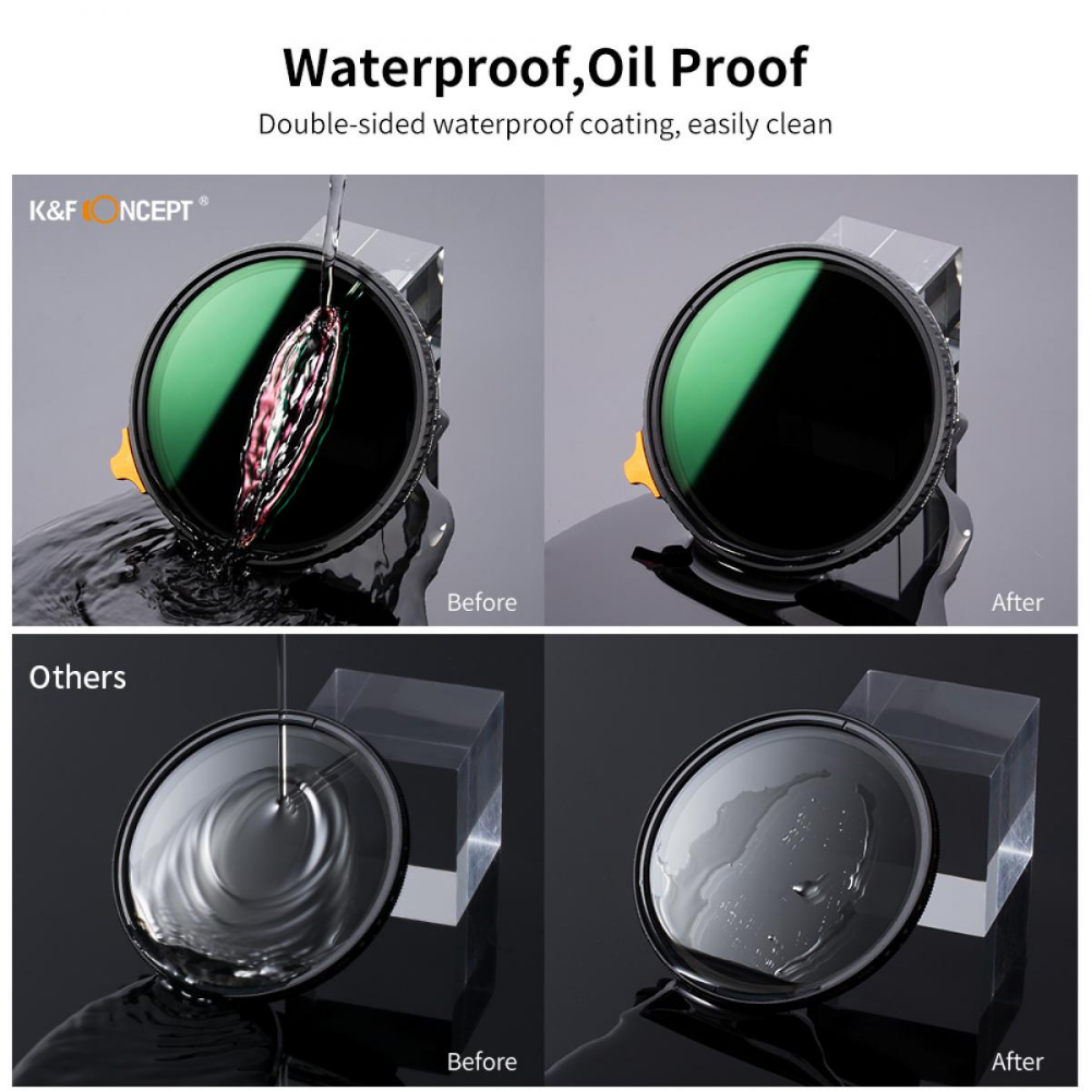 Ta filter ima funkcije ND in črnega difuzijskega filtra 1/4 učinka, ne le da lahko nadzoruje količino svetlobe, ki vstopa v objektiv s prilagoditvijo (1-5 stopinj), temveč tudi ustvarja učinek sanjskega filma za fotografije in videoposnetke.
